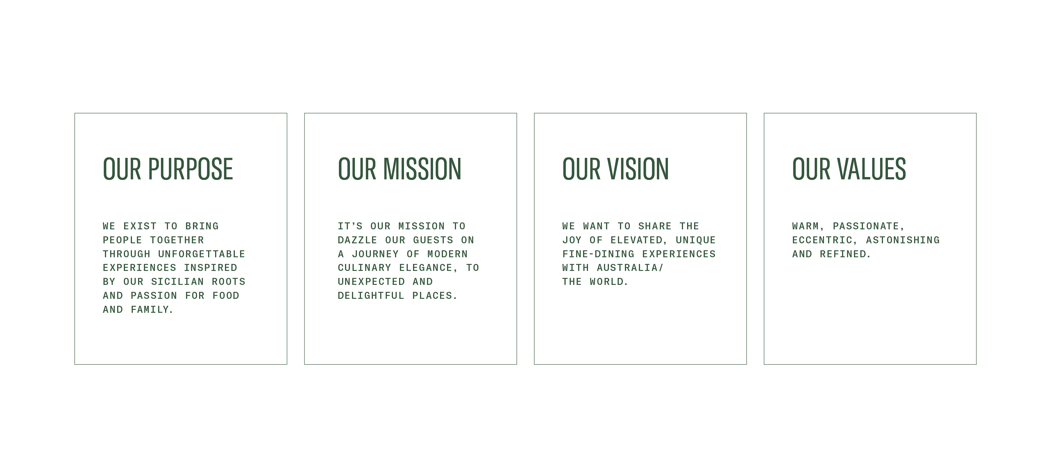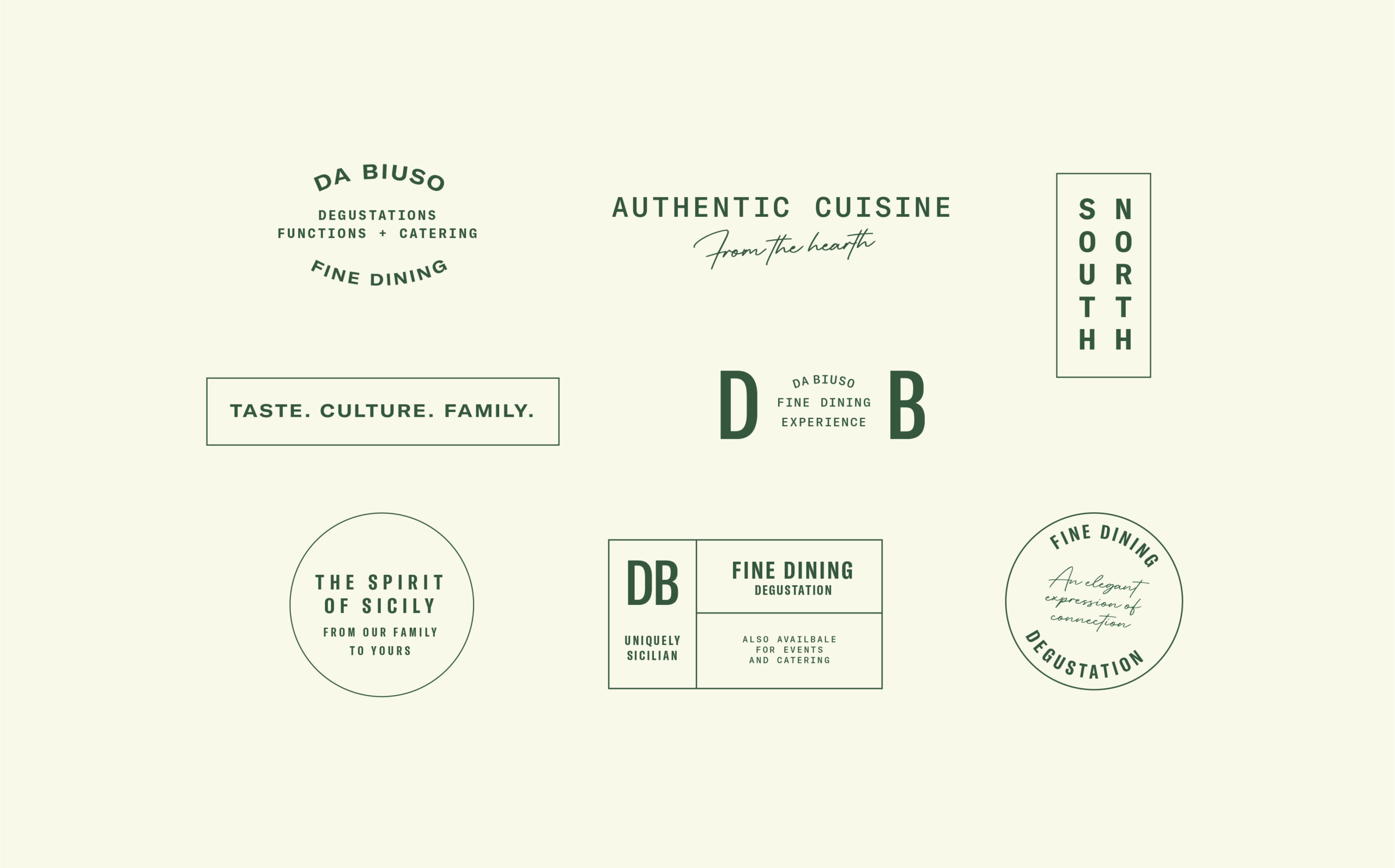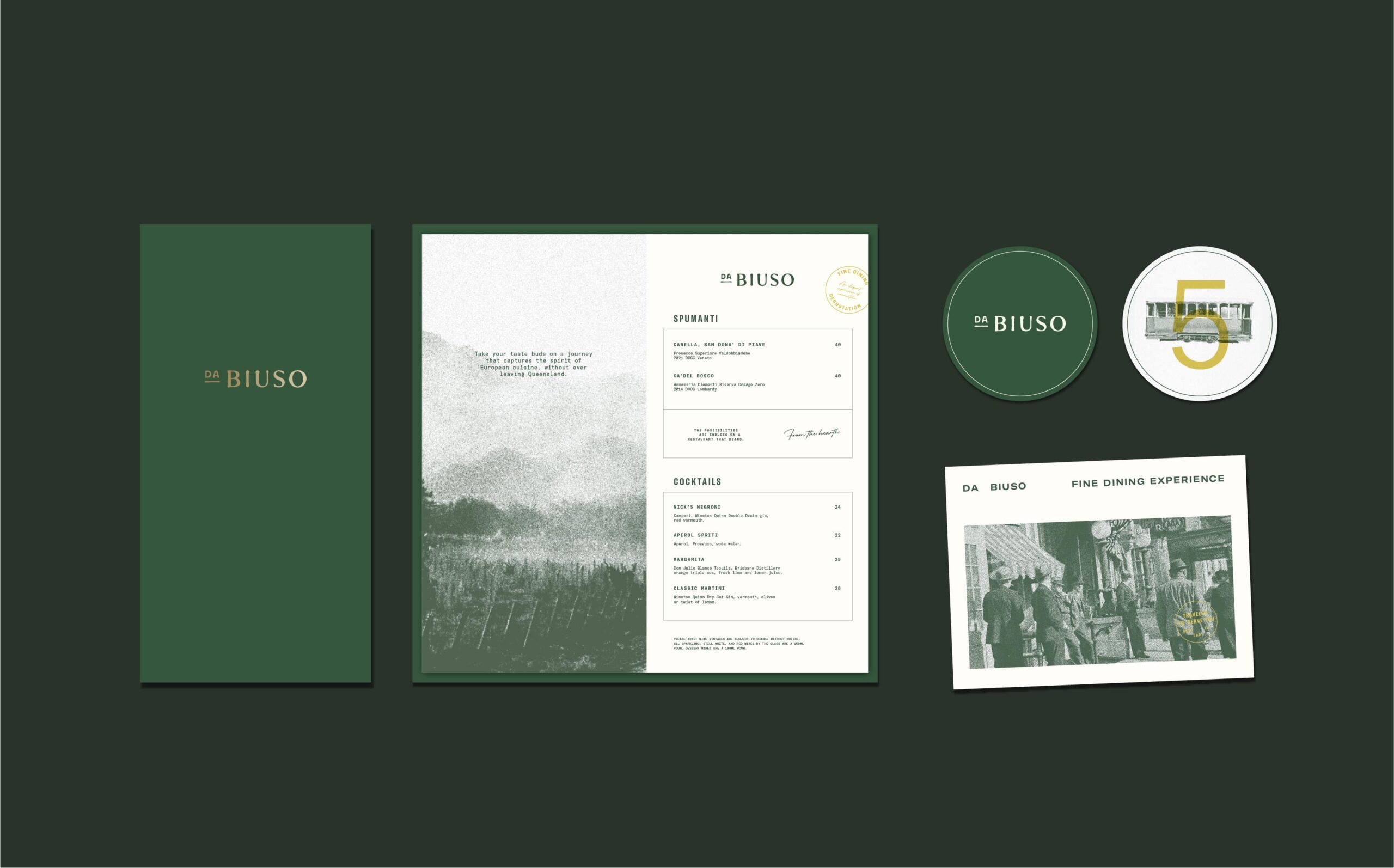 Da Biuso is an elegant fine dining degustation experience on board a repurposed coach. They needed a brand that would conjure the old-world charm of a time when service mattered.