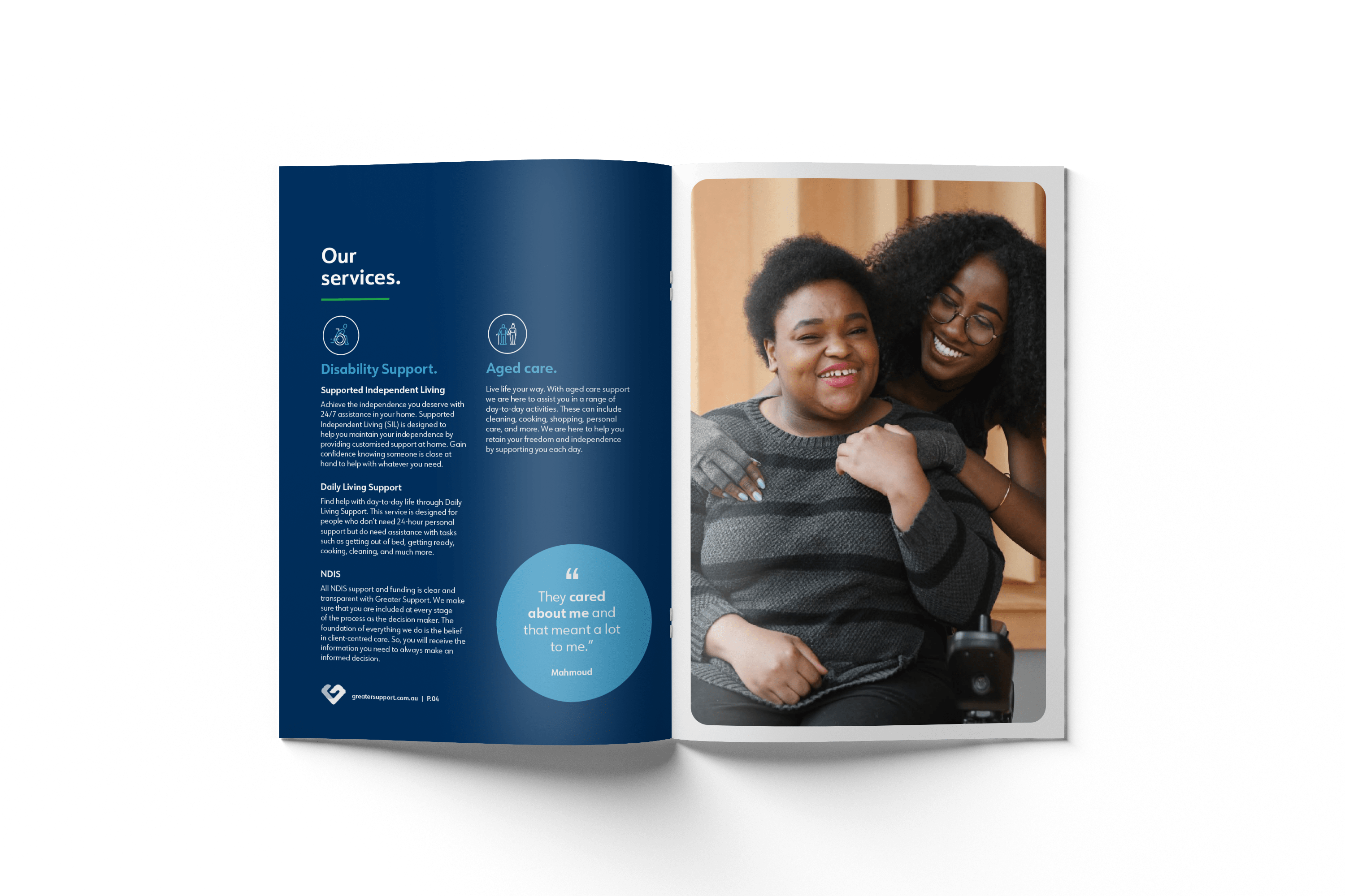 They needed to market two services for distinct groups: disability support and aged care support. They required the use of stock imagery so our challenge was to create a website that feels sincere and genuine, without branded photography.