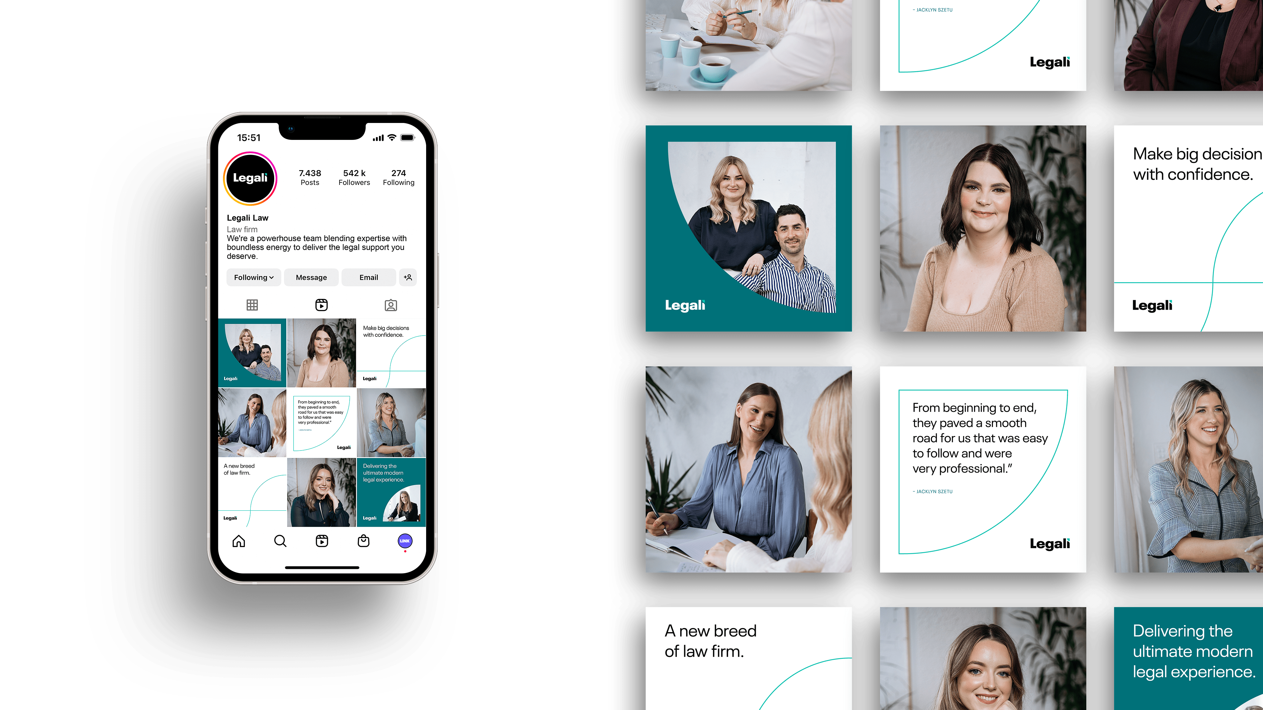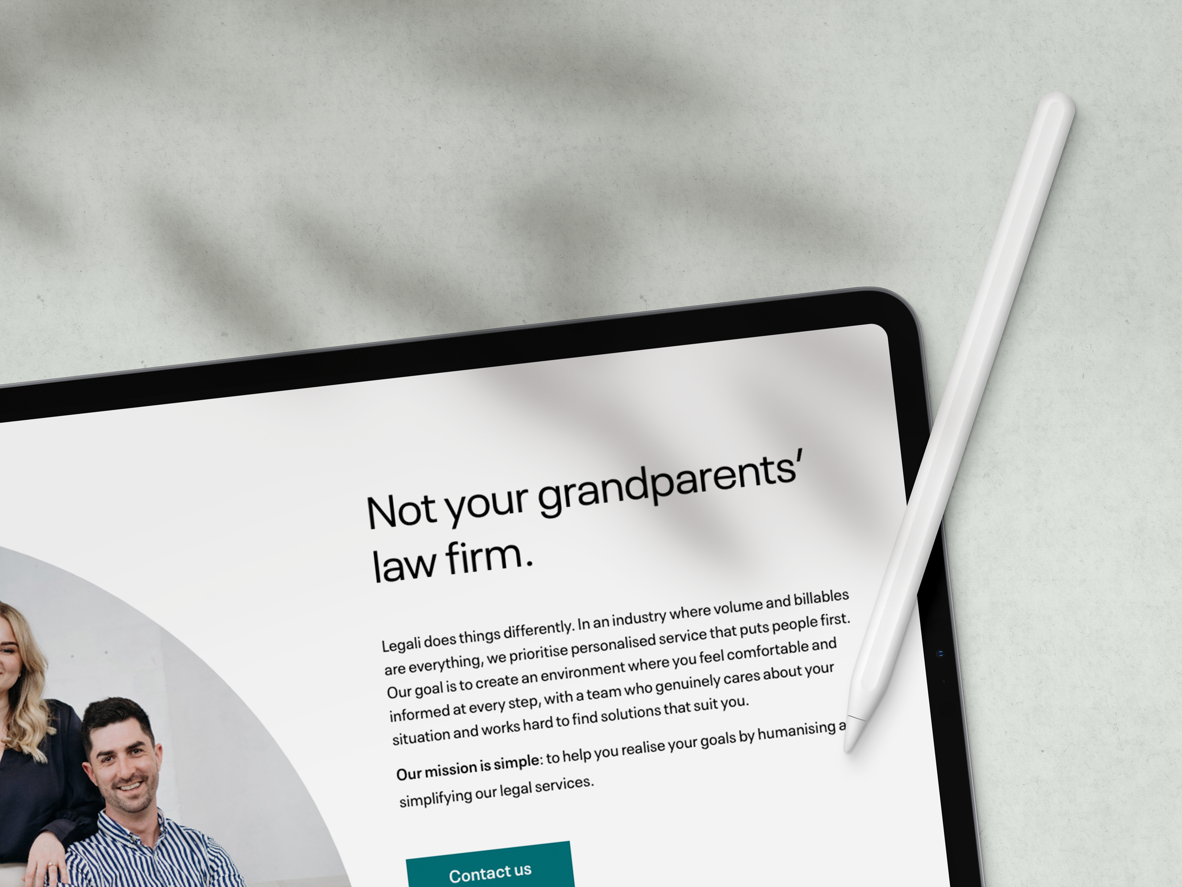 To solidify Legali as a game-changer in the field of law, with a brand that reflects their drive to create the ultimate modern legal experience, delivered by lawyers you’ll actually like.