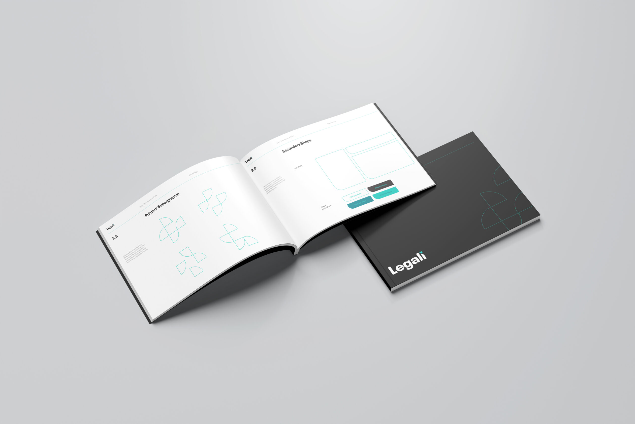The dynamic quarter shape used in the logo is the bedrock of Legali’s visual identity. The shapes feel warm and approachable and form secondary brand elements that make them instantly recognisable.