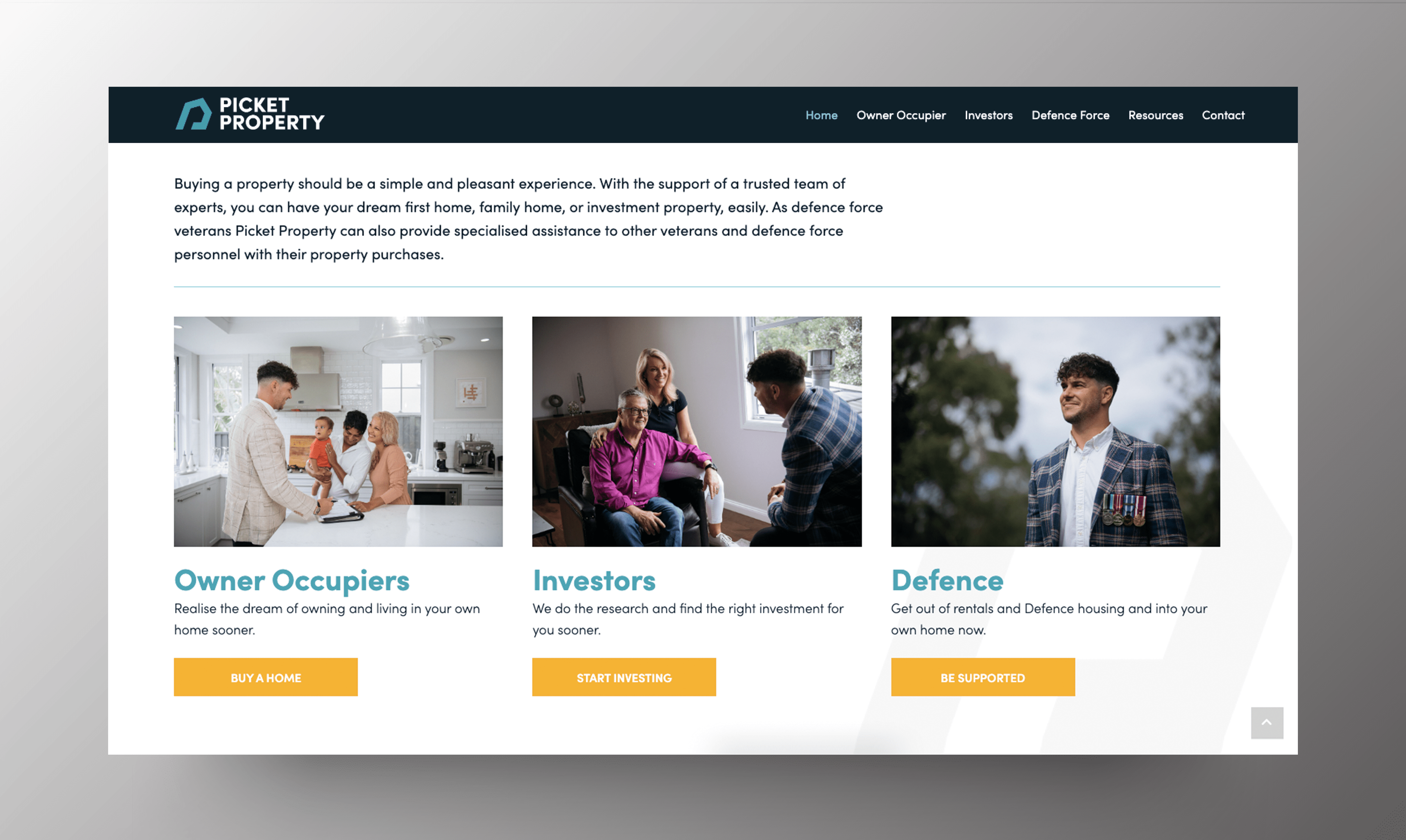 Buyers agents are pretty foreign to most people. So, every detail of the brand and website had to clearly communicate Jarryd’s genuine, welcoming and sincere approach to property negotiations to two market groups: returning veterans and civilians.